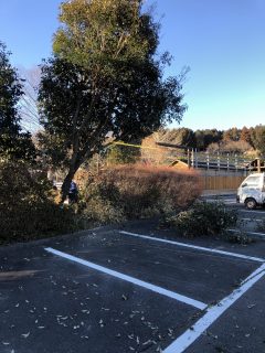 乗馬コーナーの木をバンバン倒す・・・ドングリの木。(´;ω;`)