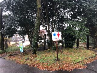 (ちょうど余っていた)トイレご案内看板があったので、立ててみる。