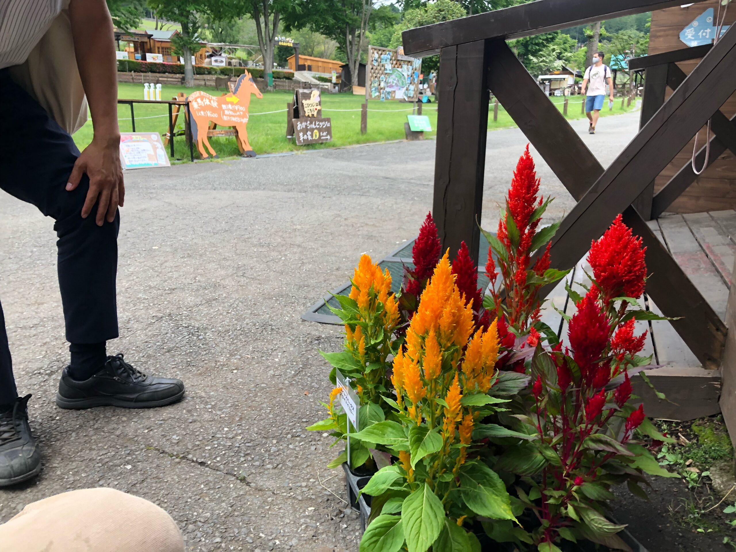 菜の花だった、広い斜面の花畑に堆肥を入れかけて作業が止まっておりました。