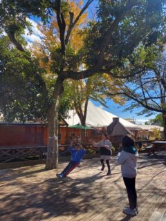 リョウ君達が遊んでいるこのブランコ、6年ほど前に「おっ。枝のかたちがいいねぇ♬」と、廃材を組み合わせてブランコを作って見たモノ。