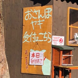 お散歩ヤギのデッカイ看板に、「時間終わりました」がめっちゃよくわかる様に表示が作ってあった。