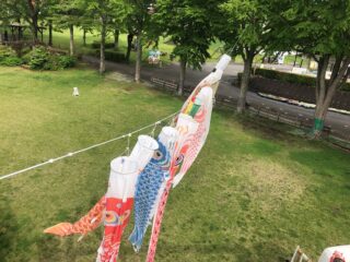 5月が終わるので、こいのぼり掲揚は明日の日曜日で終了!