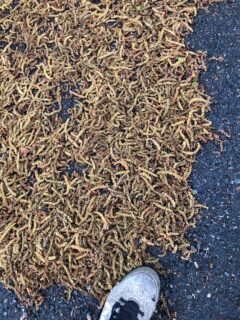 ニホンミツバチの待ち箱に、分蜂した群れが入ったのを昨日の夕方確認!!