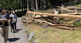 一端「落ちたてい」で、釣り下がった状況を再現してもらう。