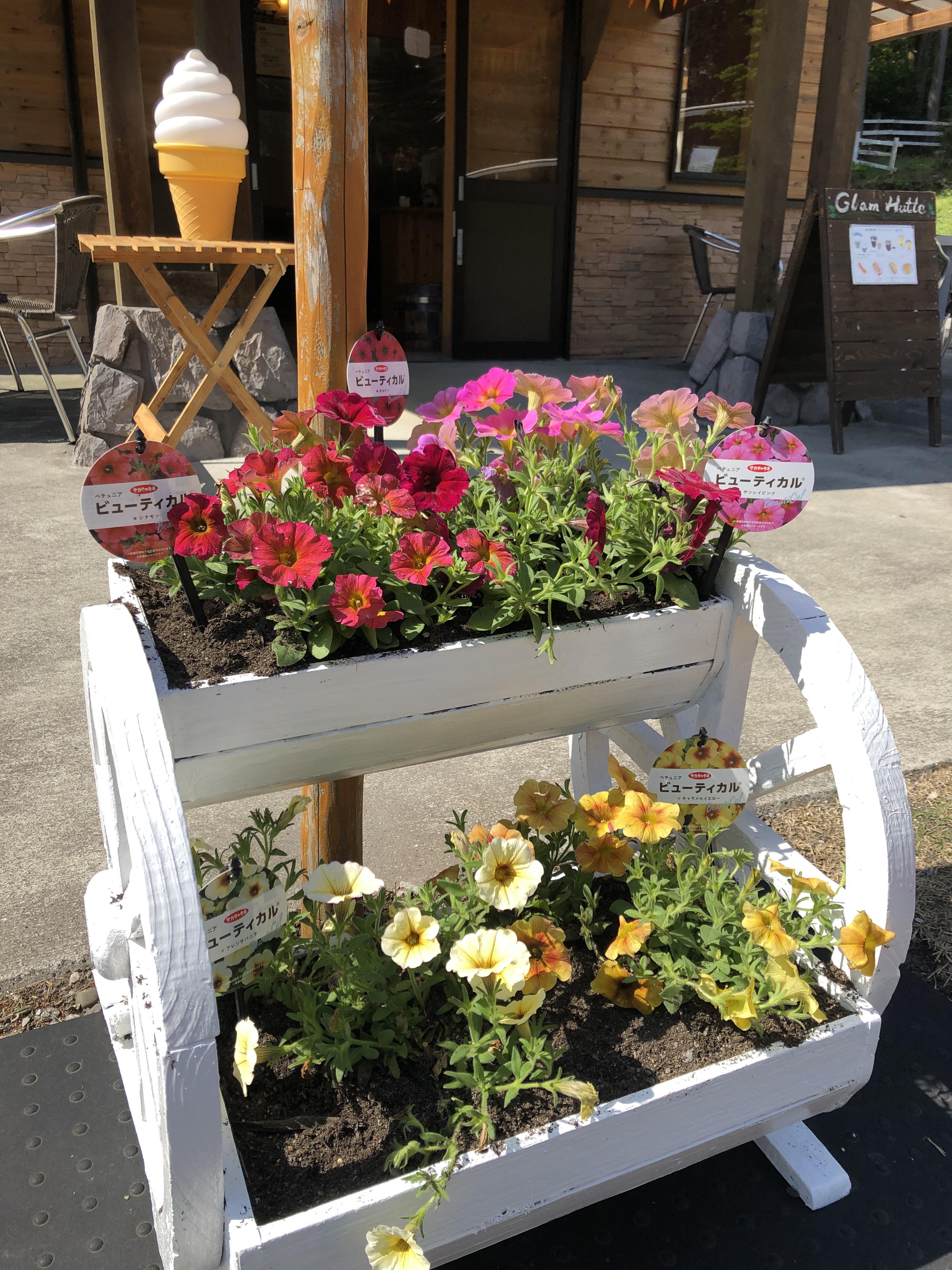 コバヤシお兄さんが花をプランターに植えてくれました。