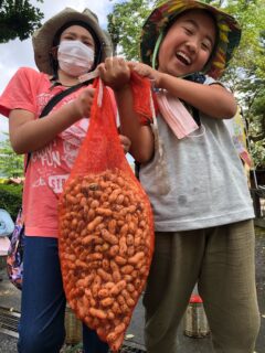 アンナさん、リコさん達は、みんなで力をあわせて大量の落花生を掘り出しました!