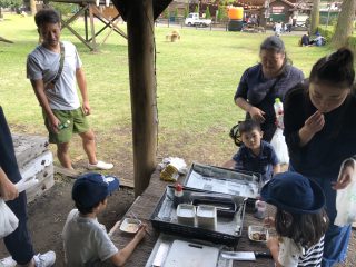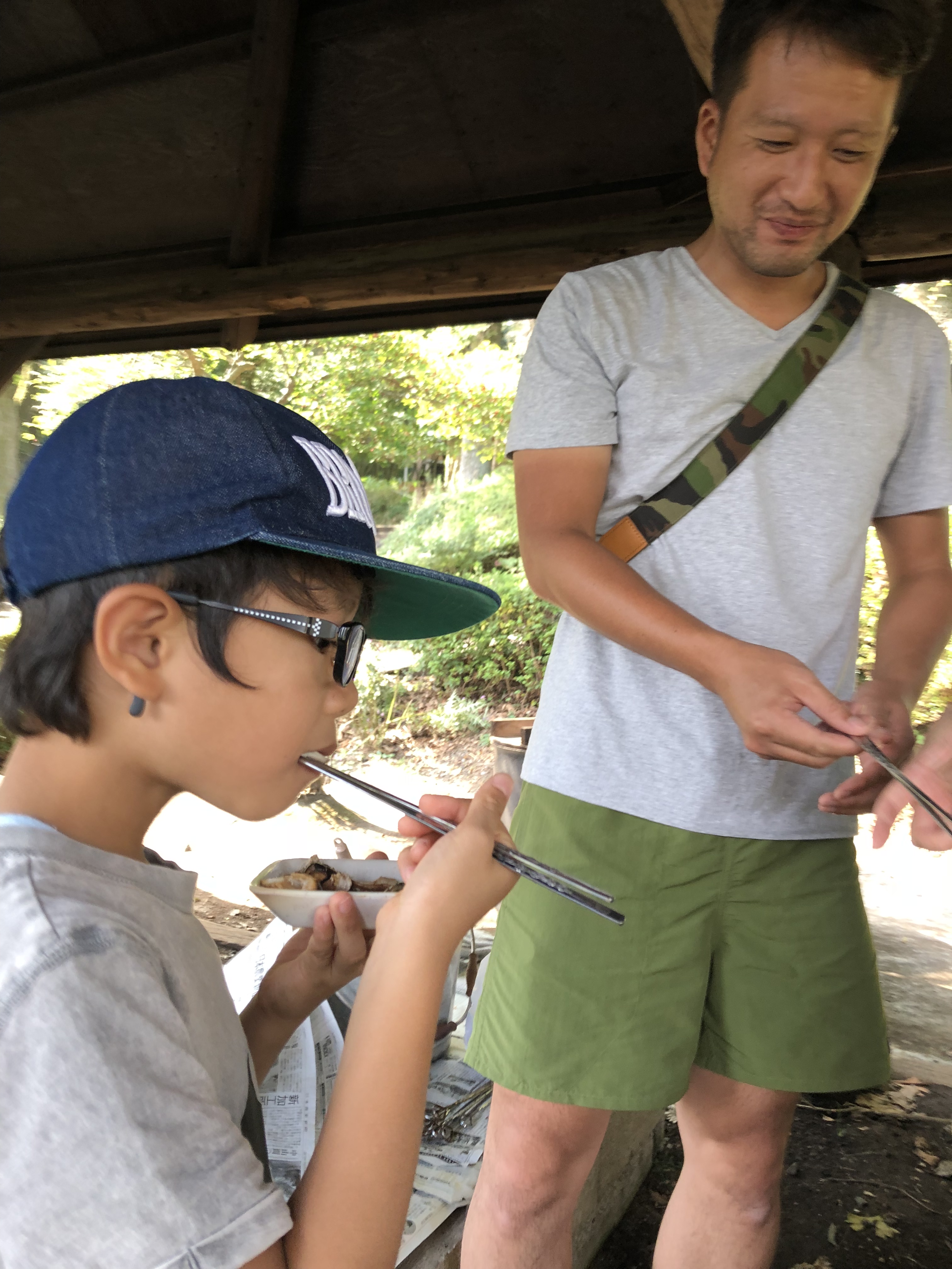 自分で採って、たき火で焼いて、お醤油かけて「いただきます!」