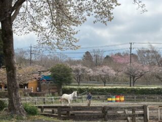 道路沿いの、まかいの牧場の桜は… 半分くらい咲いてきました。