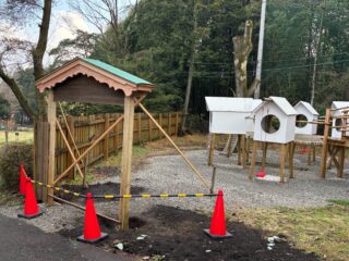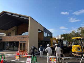 まかいの牧場産のヒノキで、ベンチ16本を作成する。