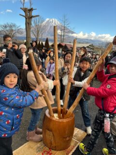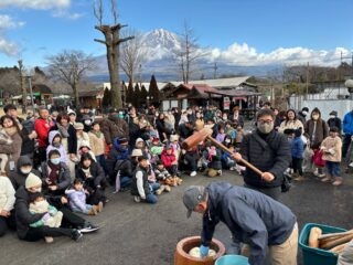 安全に配慮しつつ、1臼目は屈強なお父さんや、屈強で美しいお姉さんたちにも力を借り