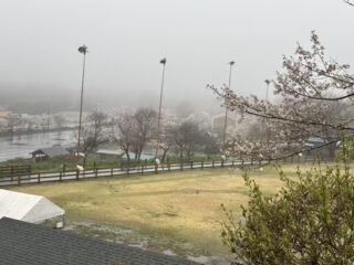 ポールを6本建てられましたが、昨日は土砂降りで揚げられず…