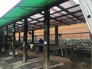 馬の屋根がすべて飛び、バラバラにして使える部材と使えないものを分け・・・