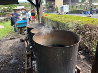 農園の皆さまの掘りまくった落花生が、ヨシダお兄さんのたき火で