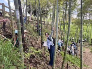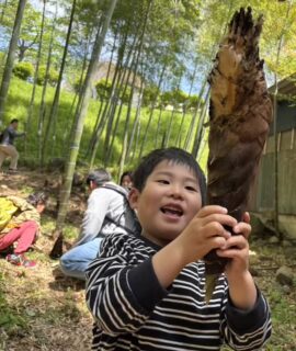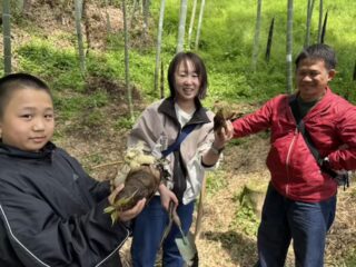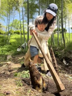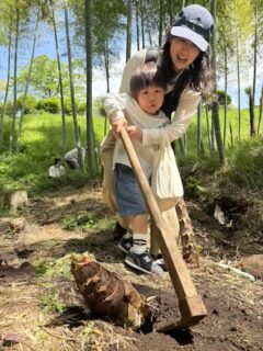 ママと一緒にタケノコ収穫最後の「ボグッ♪」をする!