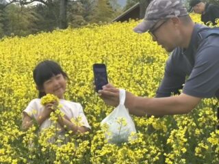 「少ししゃがむと、花に囲まれた感じがアップするぜ!」