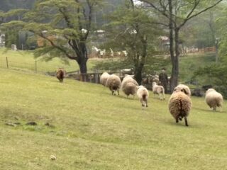 と思ったら、手伝いに来てくれているマツキお兄さんが羊の放牧場を走り回っていた。