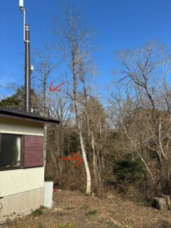 白い方の木が、完全に家の方に向いていて、「倒すと家屋を破壊する状態」で、重機やチルホール(マンリキみたいなロープ引っ張るヤツ)も無かったので