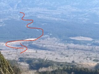 「この赤丸部分に大沢遊砂地があります」