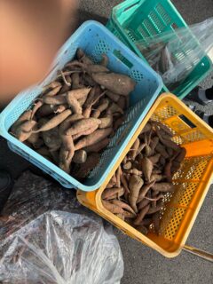 太いものはレストランの天ぷら用にいただきまして、細いものは動物へ!