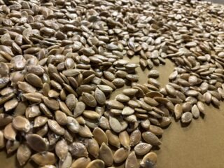 ヨシダお兄さん、オバケカボチャのタネを大量に乾燥中。