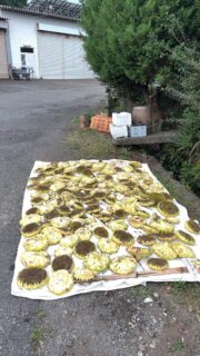 スタッフのOさんから「おうちのニワトリにヒマワリのタネをあげたい」と相談があり