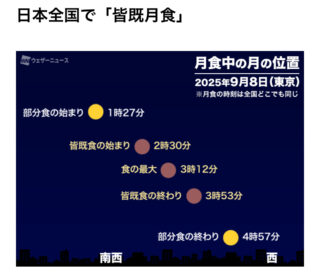 今度の月曜日(8日)は、「月食」+「満月(ハーベストムーン)」+「土星の接近」 と、天体ショーが3つ重なる日。