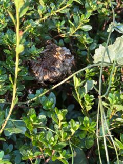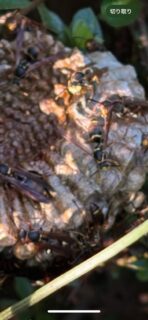 植え込みを刈る作業は必要ですが、ハチの巣があるコトになかなか気づけない。(無理です)