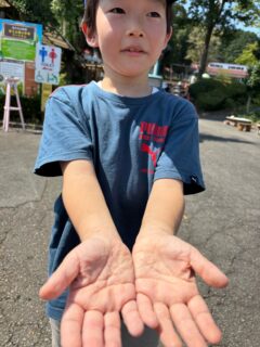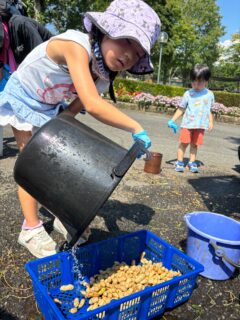 園内の遊具での遊びと動物達と触れ合いを目的でいきましたが、乳搾りあとに新海さんの元気あるピーナッツ収穫情報をお聞きして参加。あまり乗り気ではない子供達は、いざ、収穫をやりだしたら率先して収穫を楽しみました!
