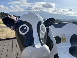 ウシベンチちゃんに、造花の桜をつけてみる。
