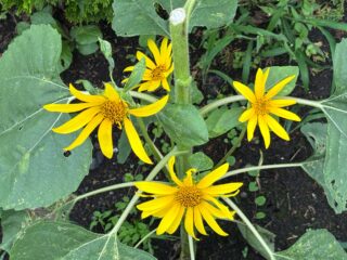 終わって来たヒマワリの、下の方に蕾が4つついていたので、朝(上だけを)ズバッと切っておきました。