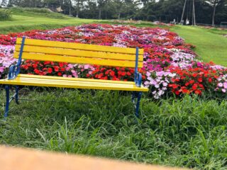 多くの方が、黄色いベンチに座って、自分の手を伸ばして「自撮り」をされて見えました。