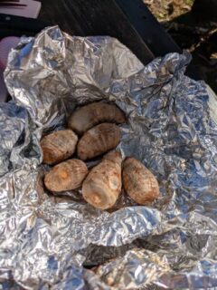 味をつけながら煮たり、ホイルでそのままくるんでたき火で焼いたり。
