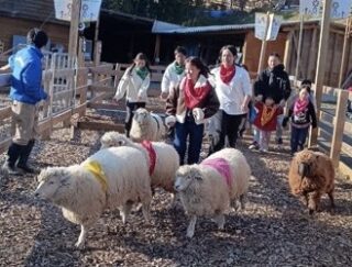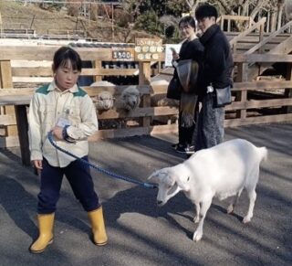 「キッズファームでヤギ移動中」