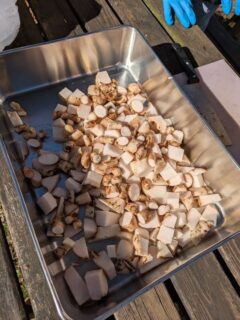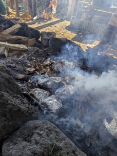 里芋の畑も持っているマナさん、掘り出した里芋を洗って、皮をむいて、煮る!