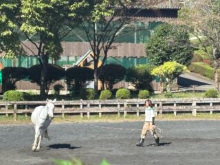 お仕事前の馬の運動に余念がないオシオお兄さん。