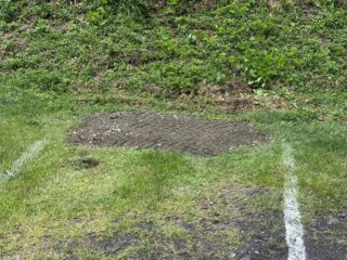 駐車場に、大人が丸まったぐらいの大穴が発見され