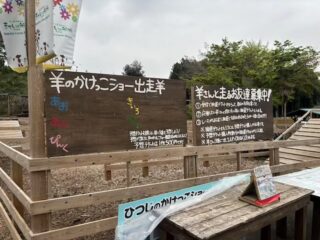 その高いところに居たら、ちょうどスギヤマお兄さんが羊たちと走って帰る瞬間に出会う。🐏👤