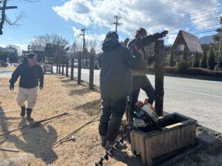 道路の安全を高めるため、頑強なクイを30本も立てまして。