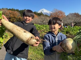 自分たちのサトイモやニンジン、大根、コンニャクイモを収穫し