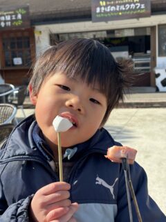串に刺さったマシュマロが、なんだか「ダラぐにゃ~」っとして来たら、最後に表面を軽く焦がして完成!!