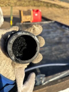 逆さ富士のトコ、(水を黒くするための)黒ペンキが凍っておりました。