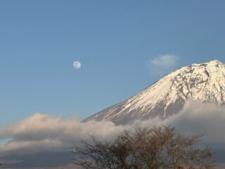 富士山に、月が現れる。