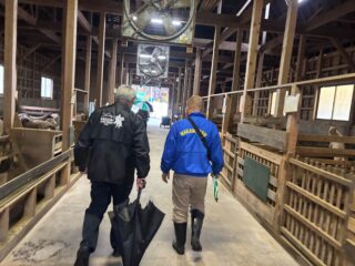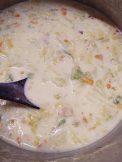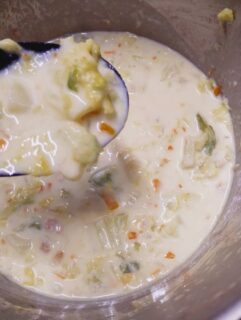 ヨシダお兄さんの白菜をたっぷり使って、クラムチャウダーを作るシライシお姉さん。