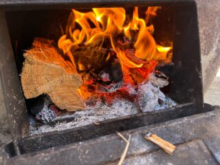 マキの炎で温めておりまして、情緒がありますわ🔥