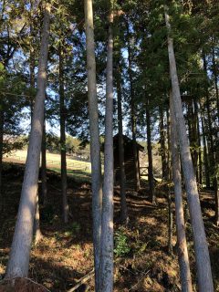 9月の台風24号で倒れかけた形の「かかり木」になっている巨大な木が5本。