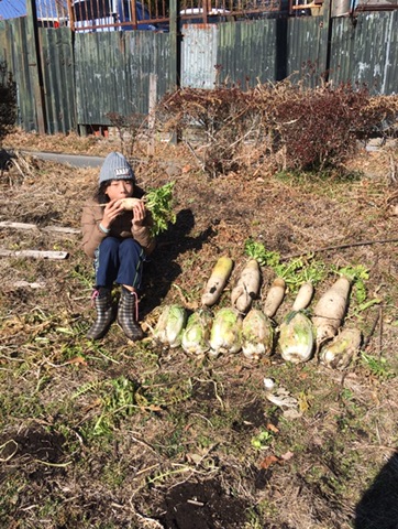 大根畑を持つリナちゃんたちは、最後の収穫に来てくださいました♪