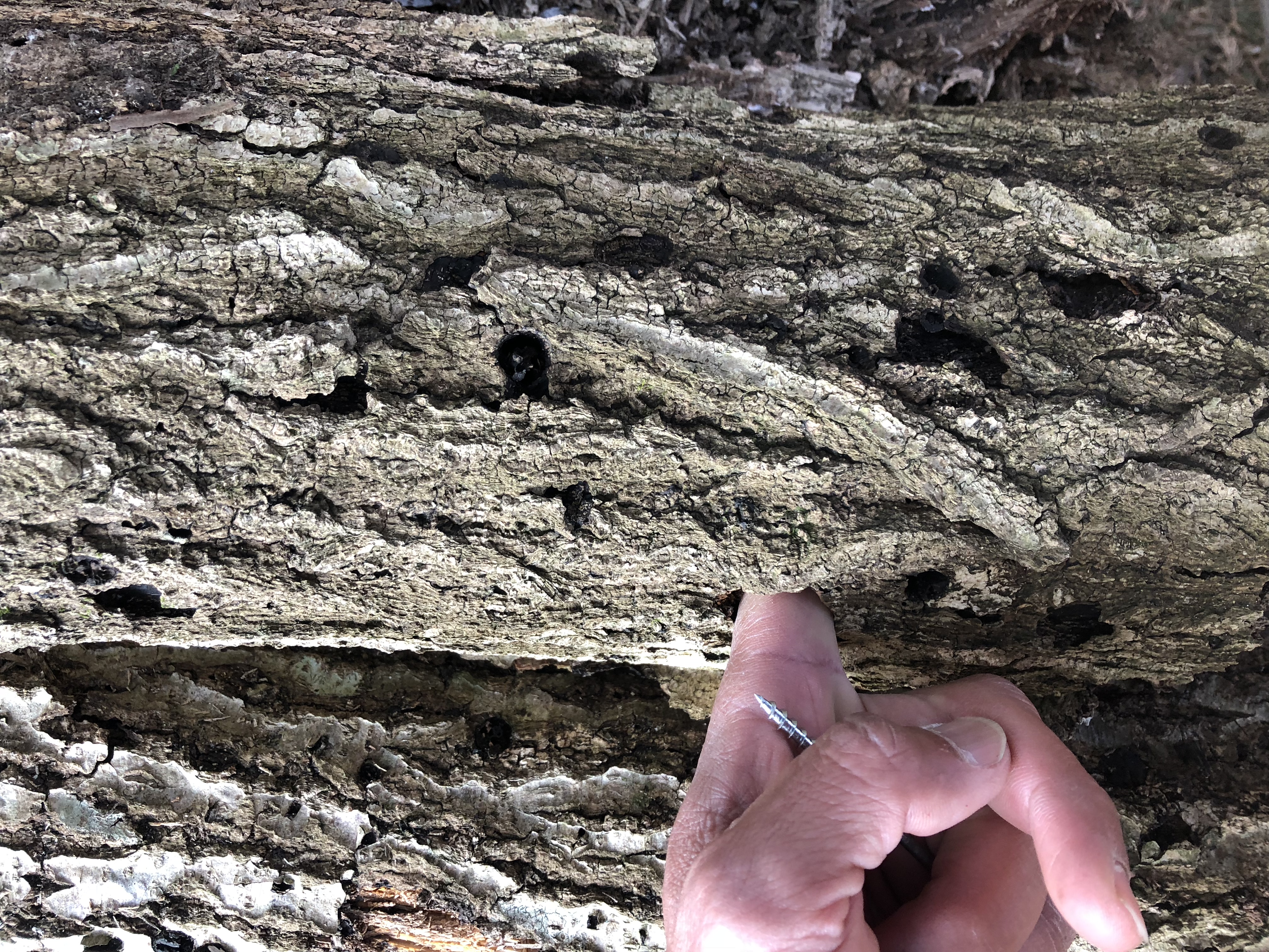 しっかりとキノコを採り終わった木は、このぐらいグズグズに・・・