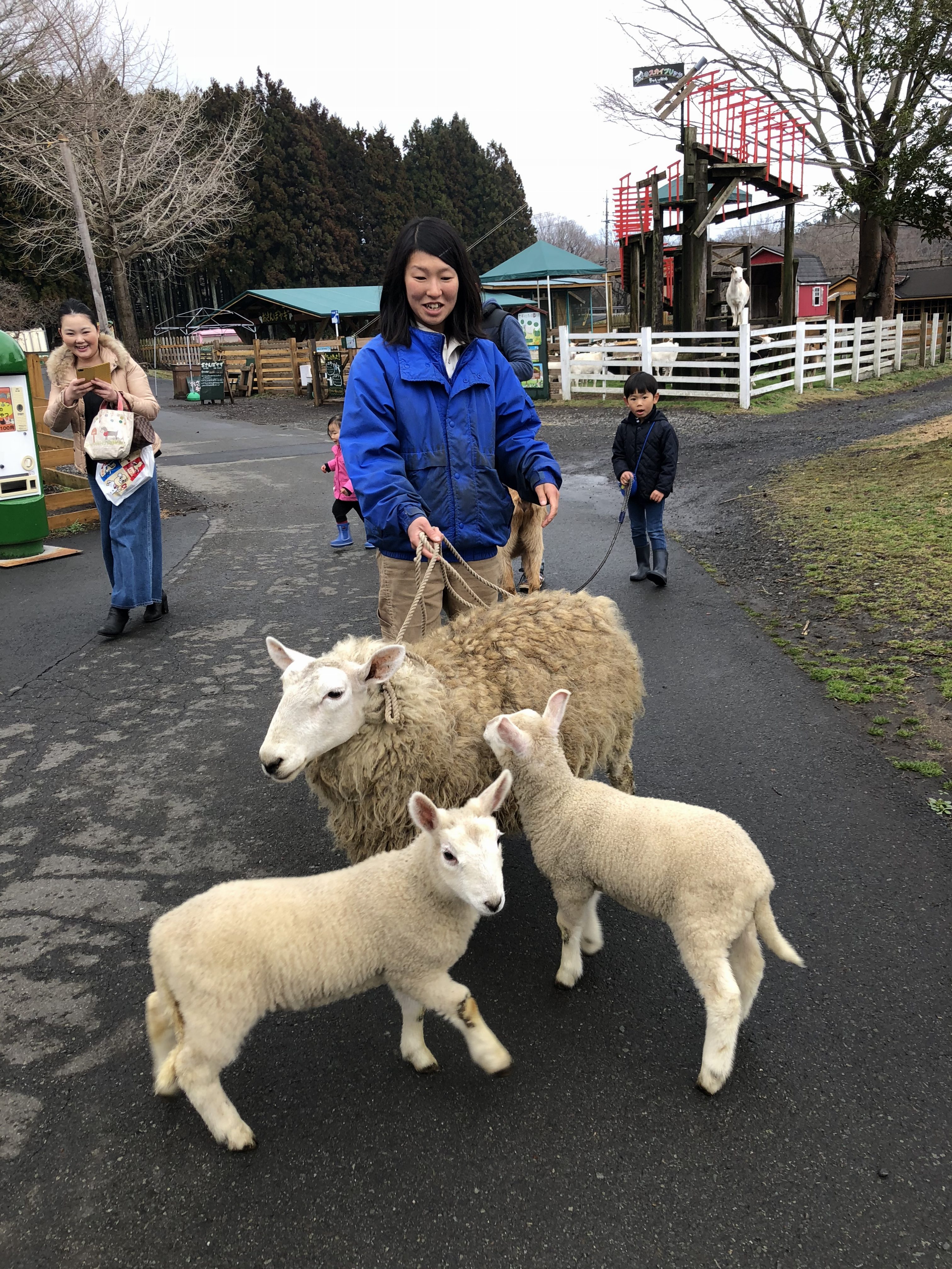 雪は消え、羊の親子が場内を行く💛