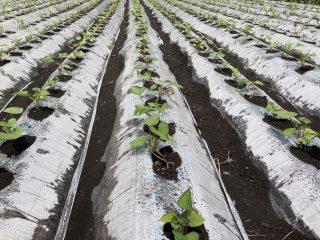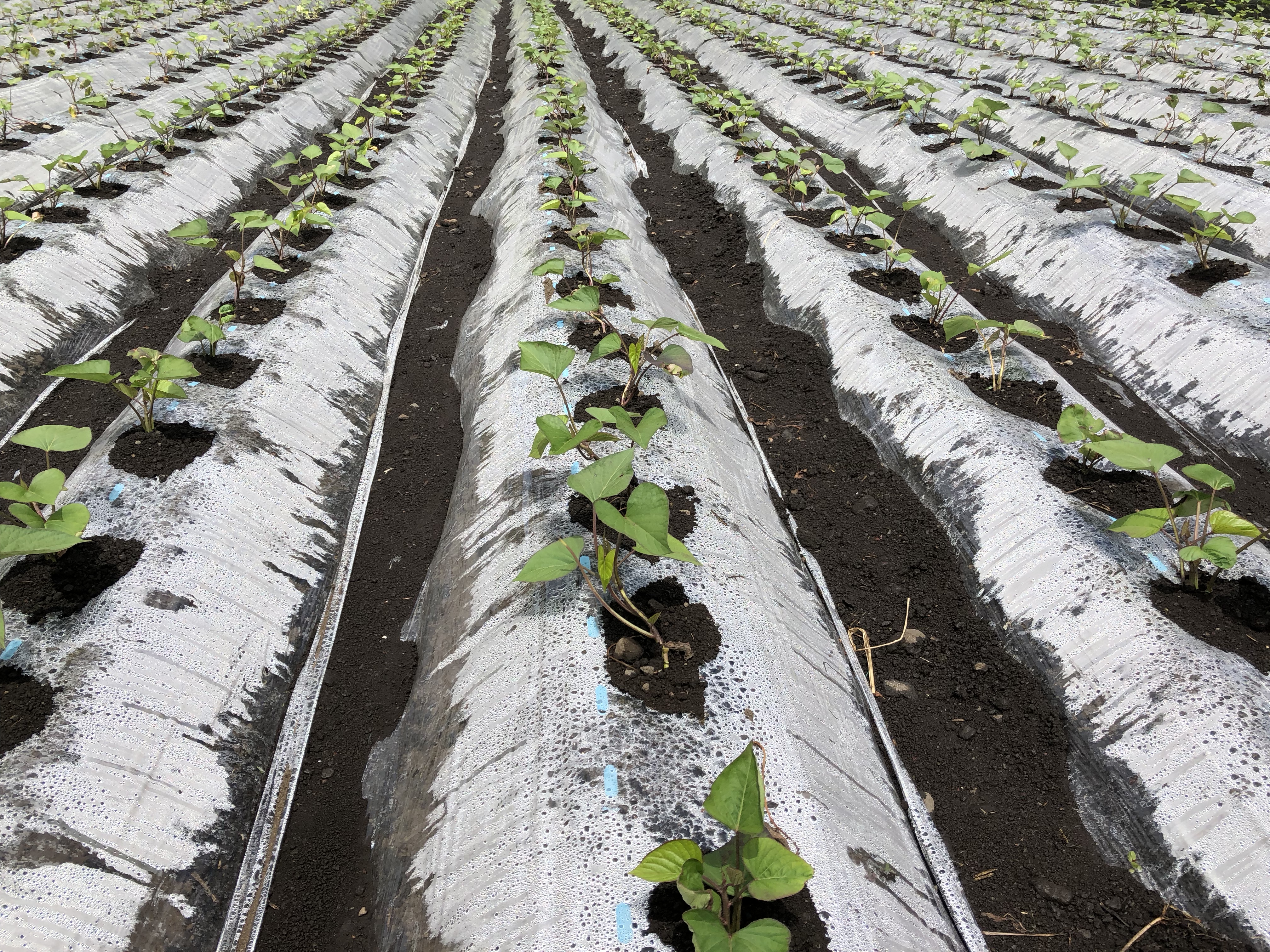 サツマイモ畑、5500株のチェック。