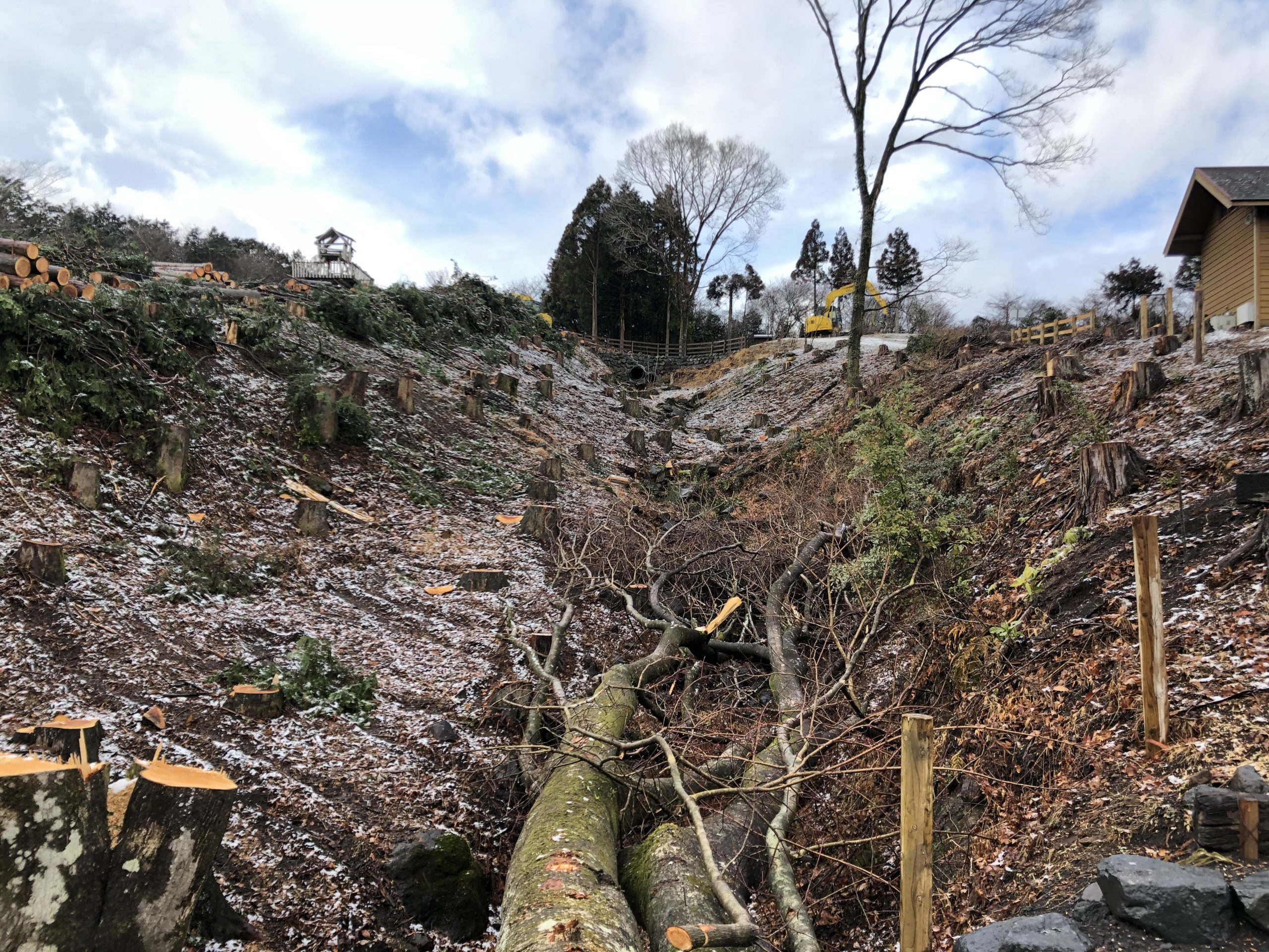※写真↑は社長が、ついでに倒したモミジと白くなった放牧場